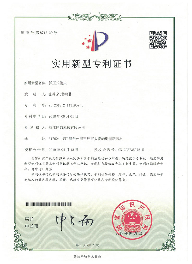 浙江同邦機(jī)械有限公司是一家主要生產(chǎn)液壓流體連接件、卡套式管接頭、過(guò)渡接頭、軟管接頭、軟管總成、硬管總成、油缸頭、汽車(chē)零部件,集研發(fā)、制造和銷(xiāo)售為一體的綜合性公司。我們擁有專(zhuān)業(yè)的設(shè)備和技術(shù)人員,并且通過(guò)IATF16949國(guó)際質(zhì)量管理體系認(rèn)證和8項(xiàng)產(chǎn)品專(zhuān)利。